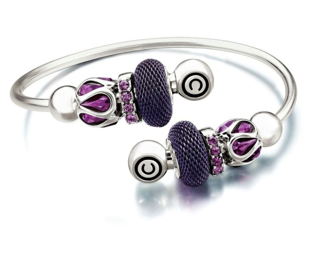 A diferencia de otros sistemas fijos, Chamilia destaca por sus abalorios modulares que pueden rotar libremente en la pulsera, permitiendo una disposición dinámica y un movimiento fluido que resalta el brillo de los cristales y metales desde cualquier ángulo.